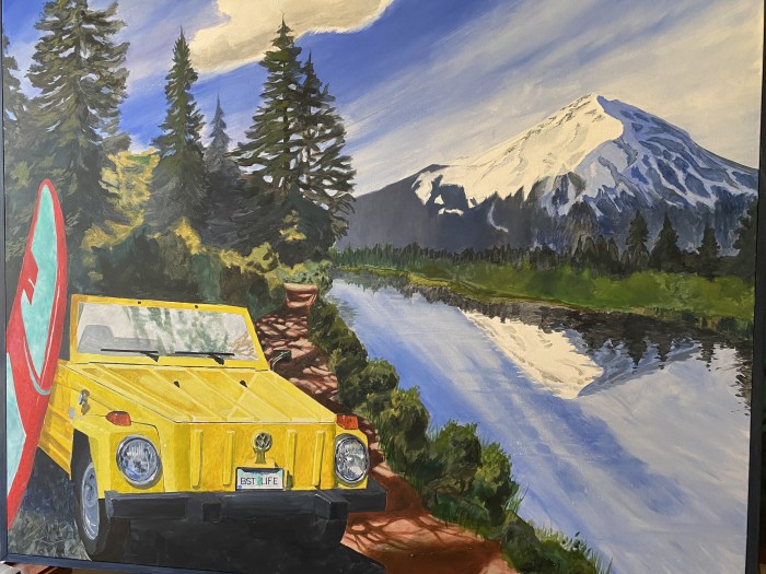 One of the best things about living and working in Bend is getting to enjoy all of the sights and tastes of the local scene – often in the same place. I’m pleased to announce that I have three large scale commissioned paintings gracing the walls of Mountain Burger at Northwest Crossing in Bend. I hope you have a chance to stop by and support local business!